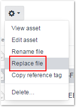 - With the file selected, use the menu (cog icon) and select "Replace file"